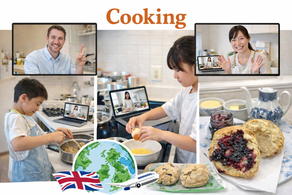 Food is culture. While cooking, students answer English quizzes and learn about foods from different countries.